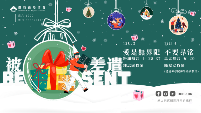 本週講員及題目 12月3日 講題: 愛是無界限 講員: 鍾志廣牧師 經文: 路加福音 10:25-37 12月…