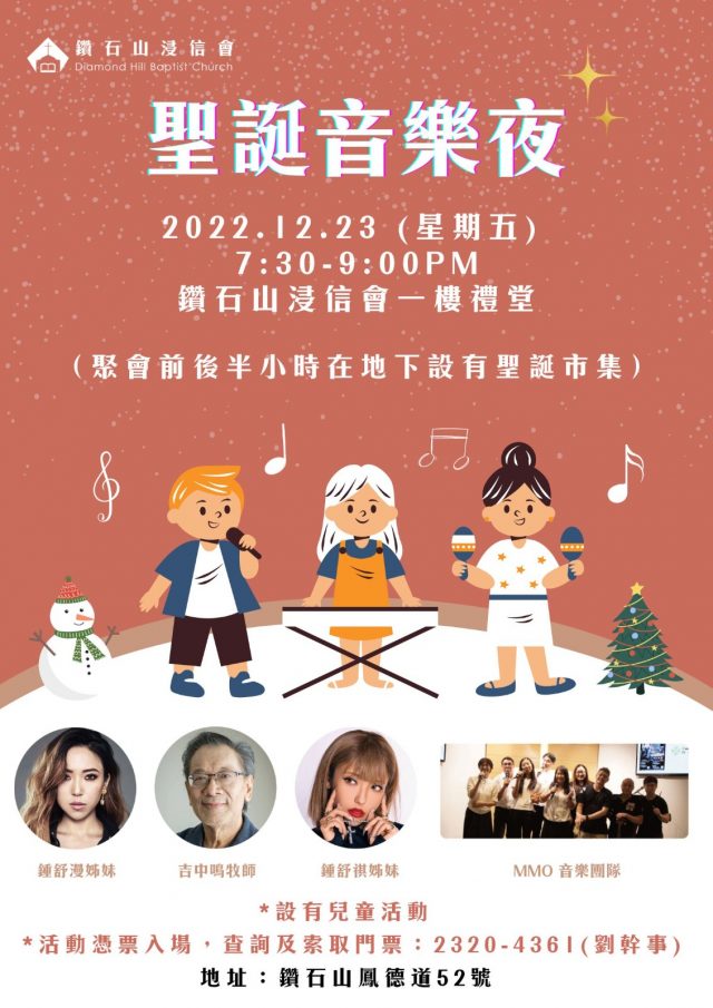 五年計劃社區服侍小組將於12月23日(五)晚上7:30-9:00舉行「聖誕音樂夜」晚會,聚會前後半小時在地下瓊…