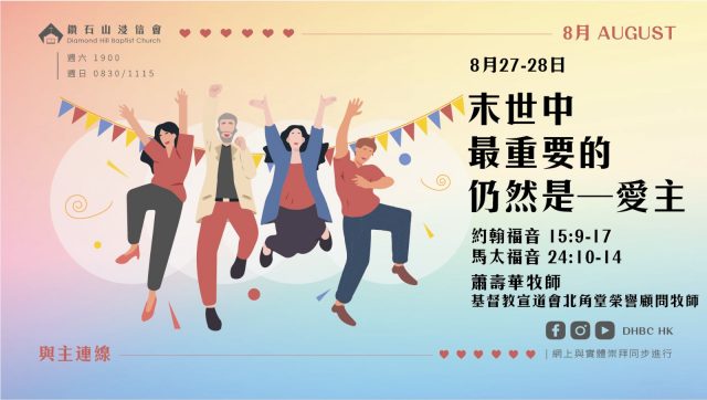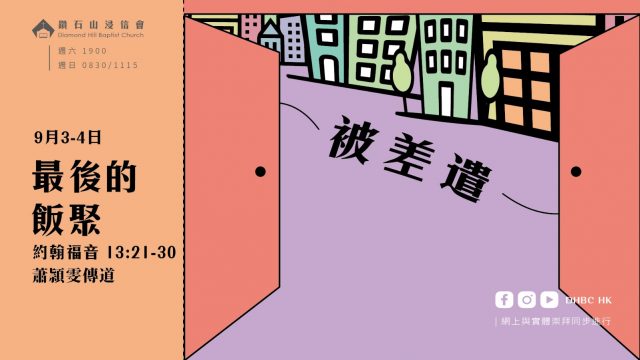 本週講員及題目 講題: 最後的飯聚 講員: 蕭頴雯傳道 經文: 約翰福音13:21-30 講道錄音 晚堂 ht…