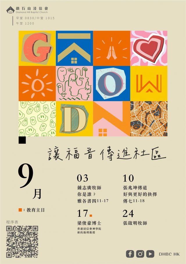 9月3日 講題: 你是誰? 講員: 鍾志廣牧師 經文: 雅各書四11-17 錄音 https://dhbc.h…