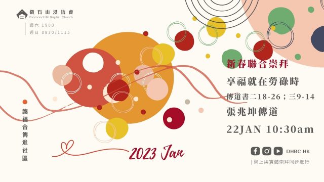 本週講員及題目 講題: 享福就在勞碌時 講員: 張兆坤傳道 經文: 傳道書二18-26;三9-14 講道錄音 …
