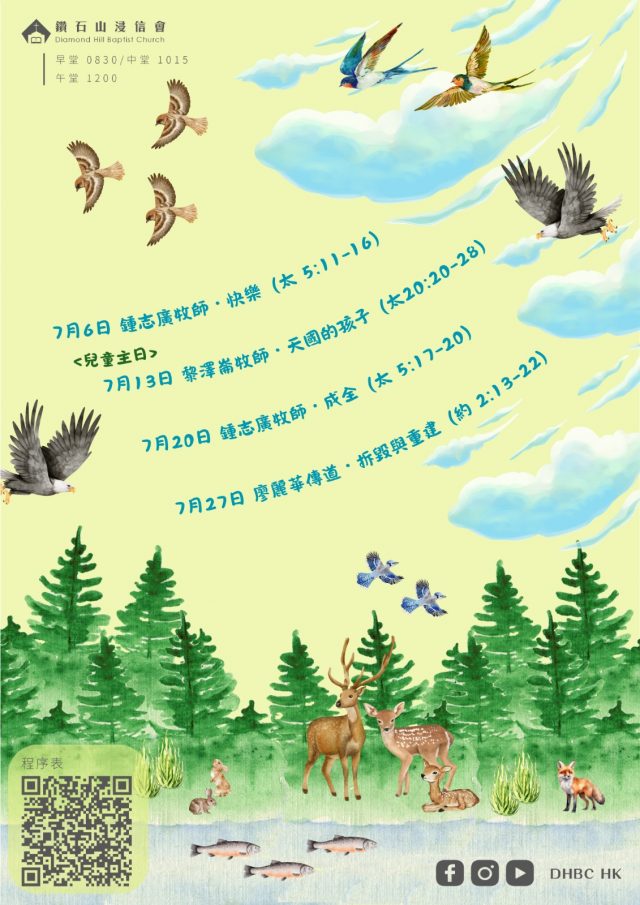 七月六日 講題: 快樂 講員: 鍾志廣牧師 經文: 馬太福音5:11-16 錄音 https://dhbc.h…