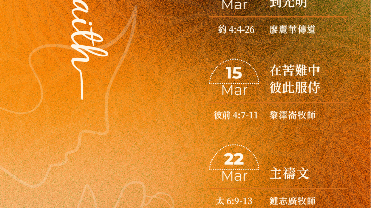 午堂崇拜(第一主日主餐) 上午12:00 對象:任何人士